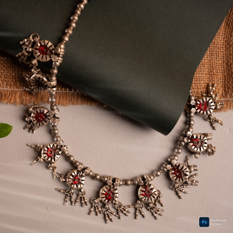 Silver necklace pc with red stones