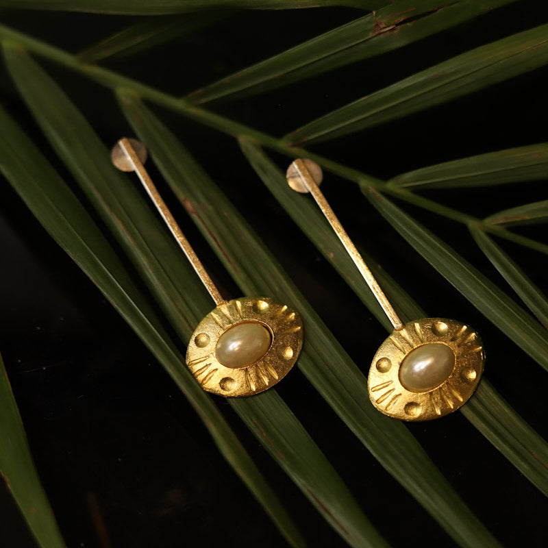 Handcrafted copper earrings in gold and oxidized polish with pearls