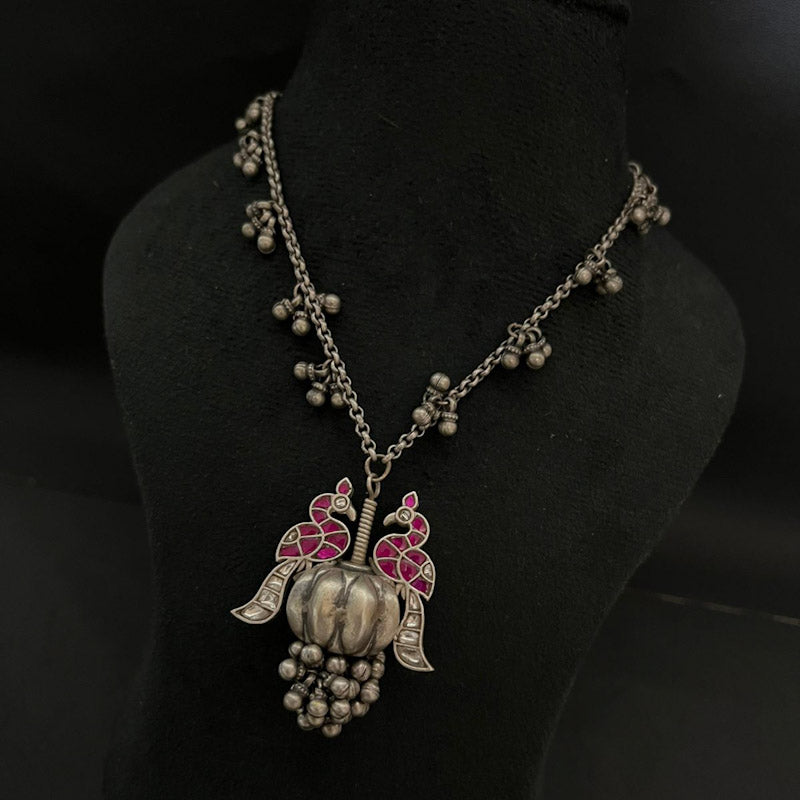Silver pendant with coloured stones and ghungroos