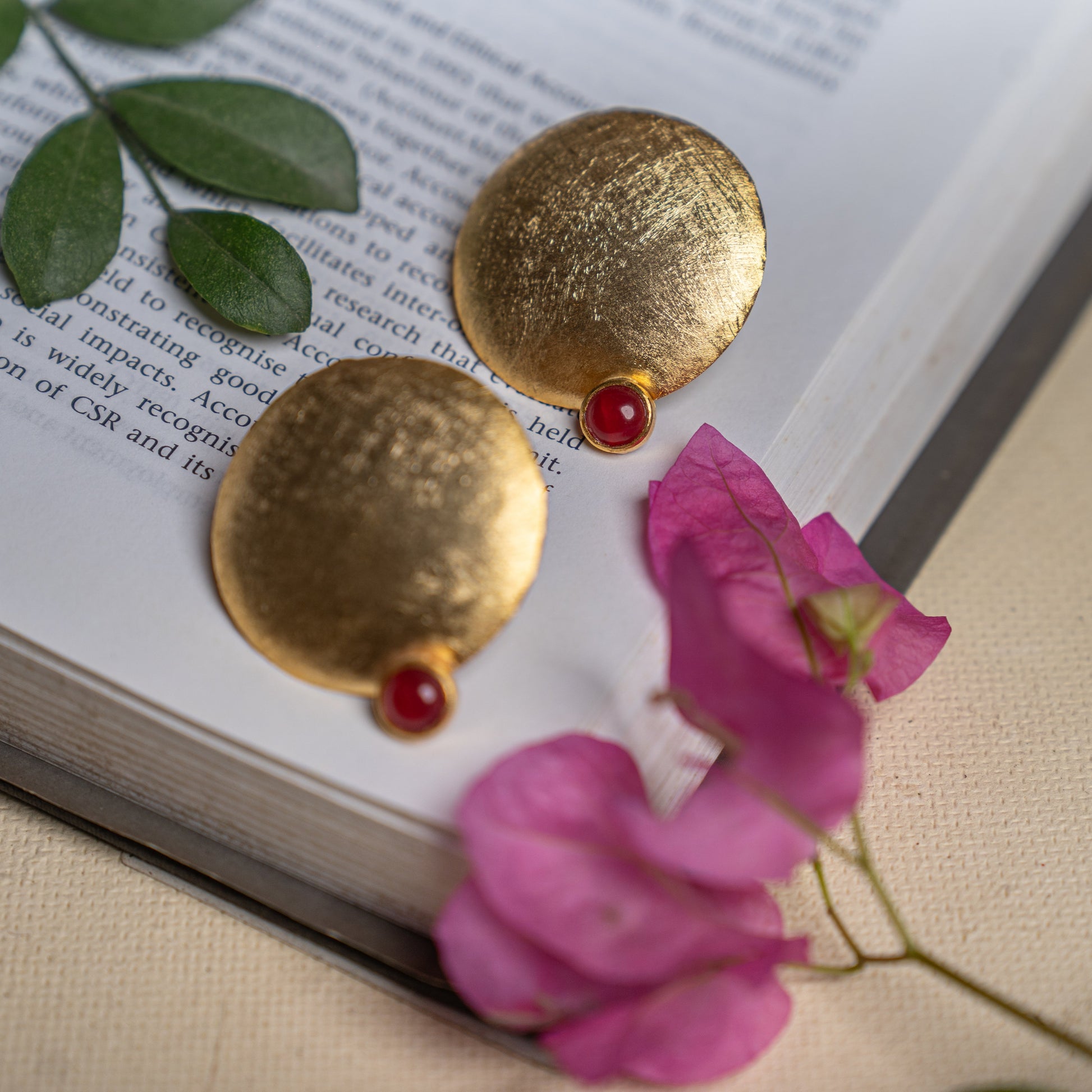 Handcrafted tops in copper with black stones and gold polish