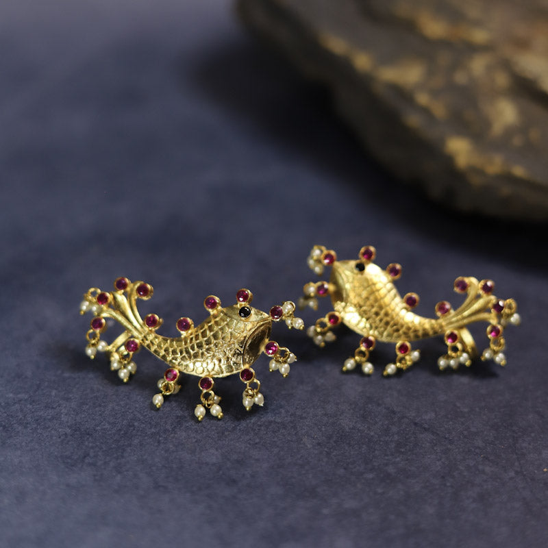 Handcrafted copper earrings with stones and pearls