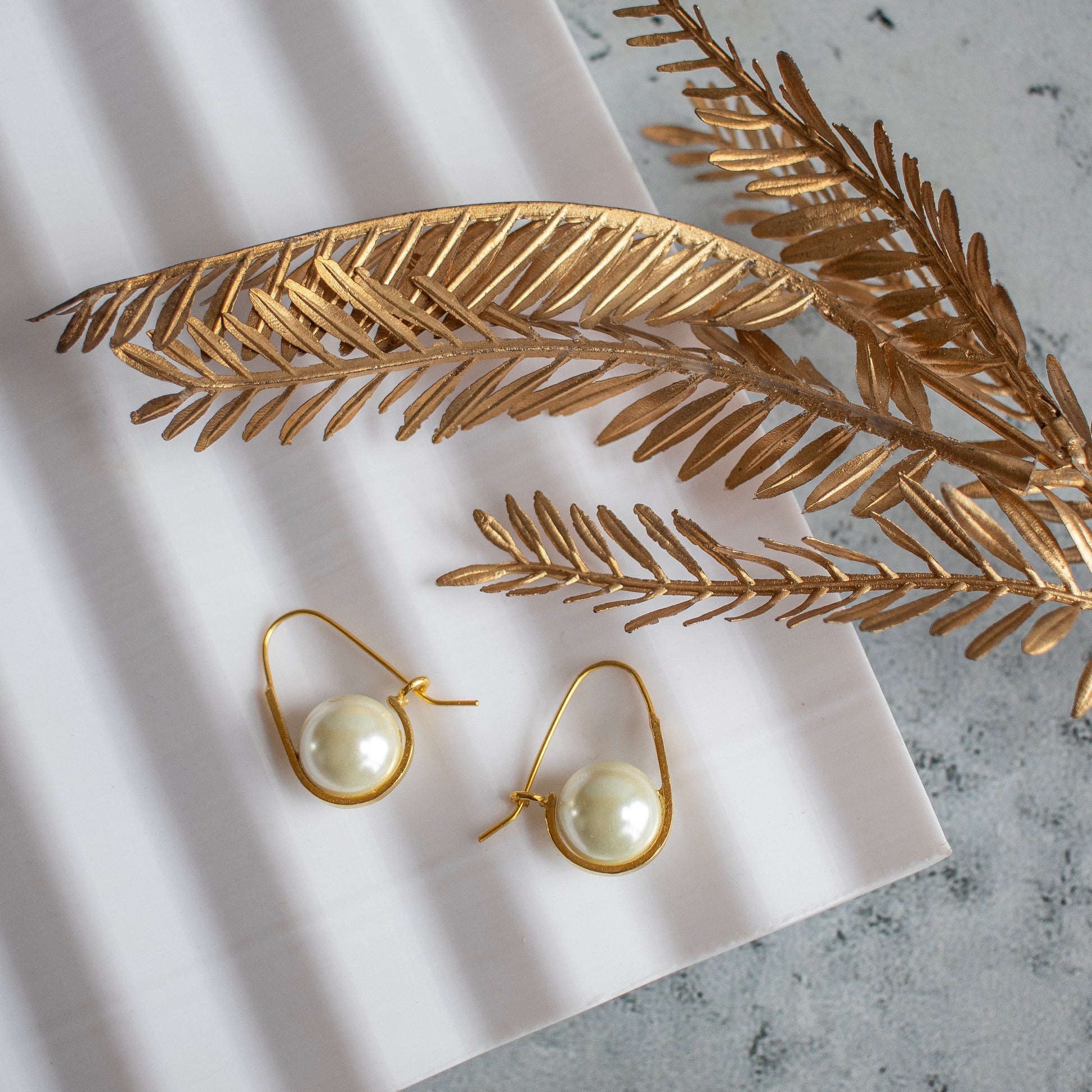 Handcrafted copper earrings with pearls in gold polish