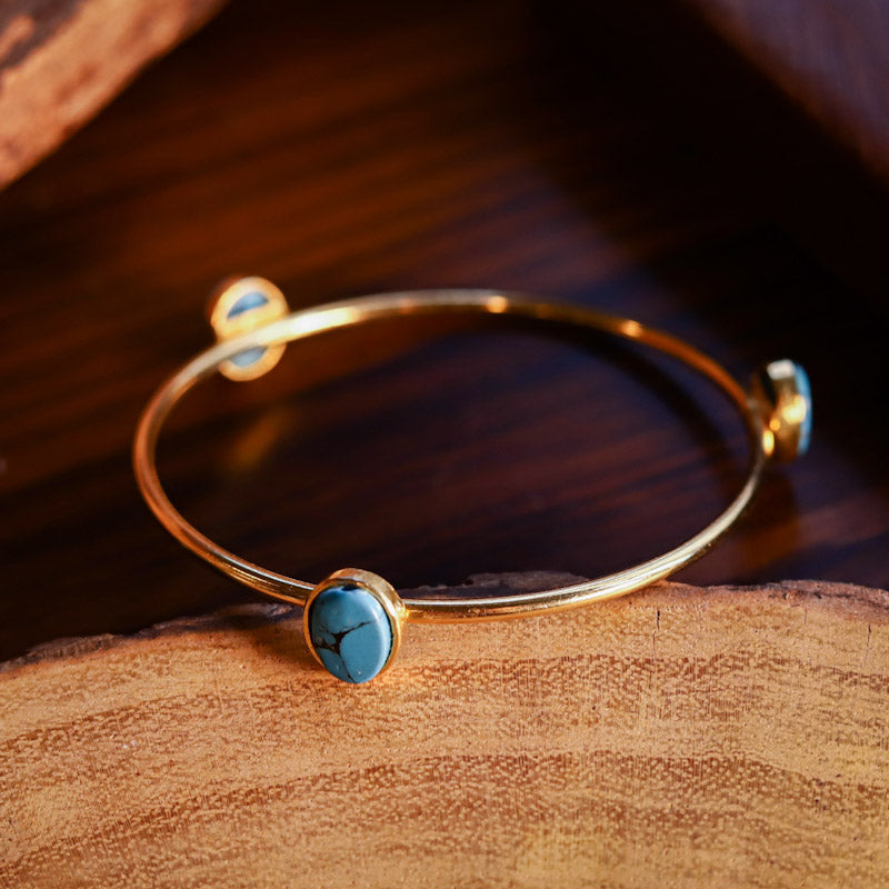 Handcrafted copper bangle with turquoise stones